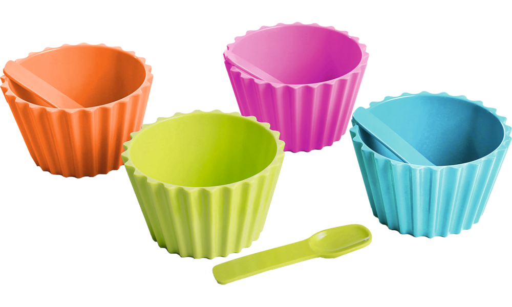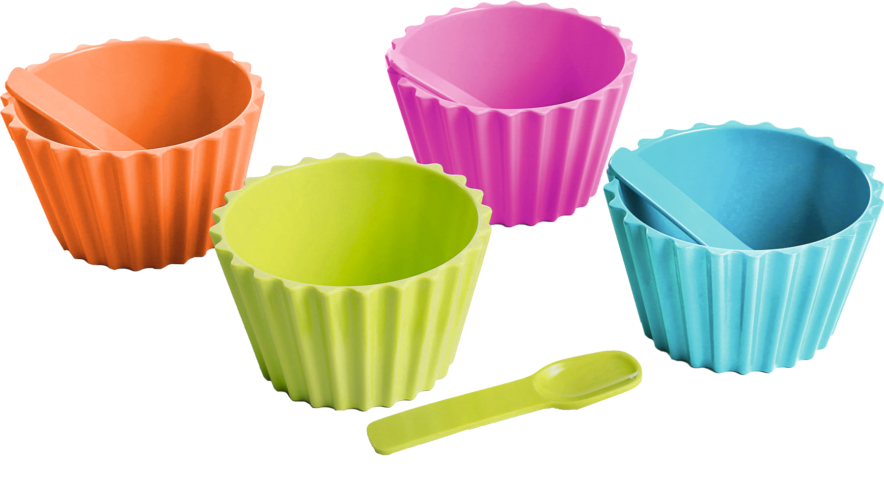 Set ICE CREAM CUP. Set mit 4 Eiscreme-Schüsseln ø 12 cm aus hochwertigem Melamin. Mit Löffeln.