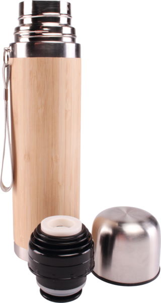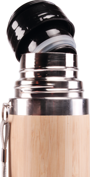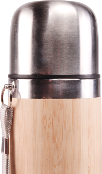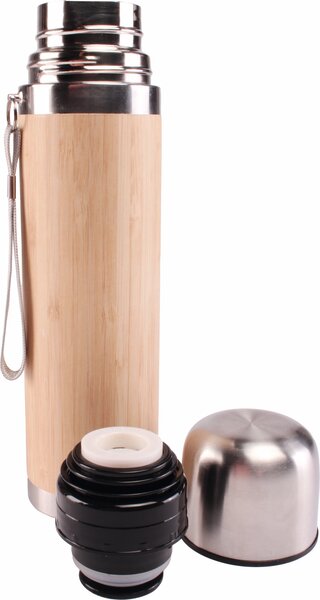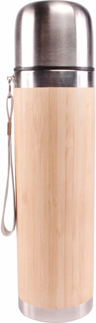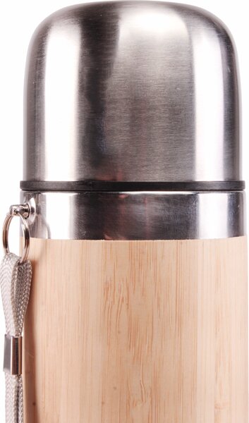 Thermosflasche aus Bambus mit Edelstahlkappe.