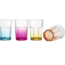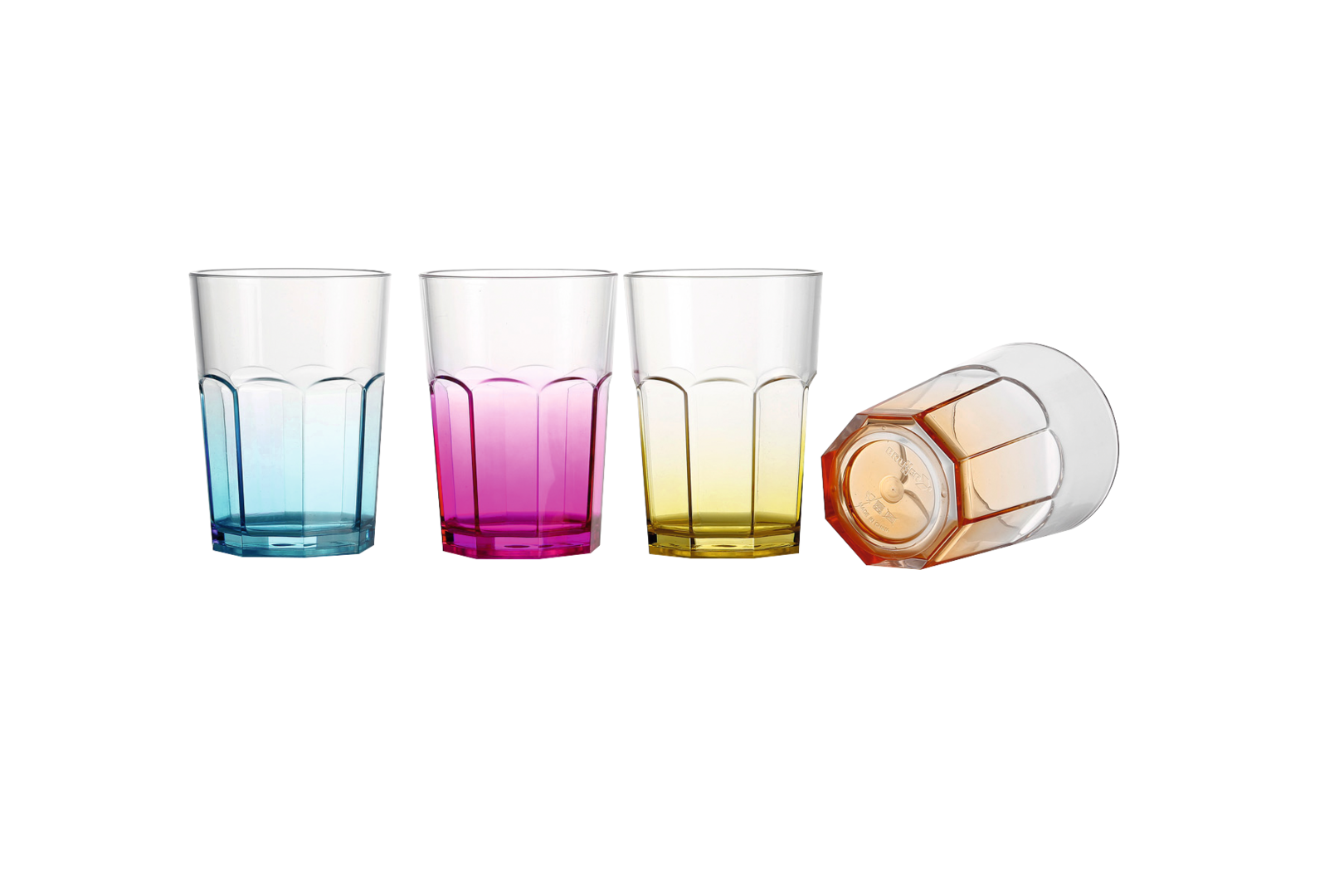 Trinkgläser-Set OCTOGLASS COLOR. Trinkglas mit farbiger Basis und praktischem Antislip-Ring. Der im Glasboden integrierte Antirutschring verhindert effektiv das Verrut-schen des Trinkglases auf Tischen oder in den Schränken. Stapelbar. Volumen je 28 cl. 4er-Set.