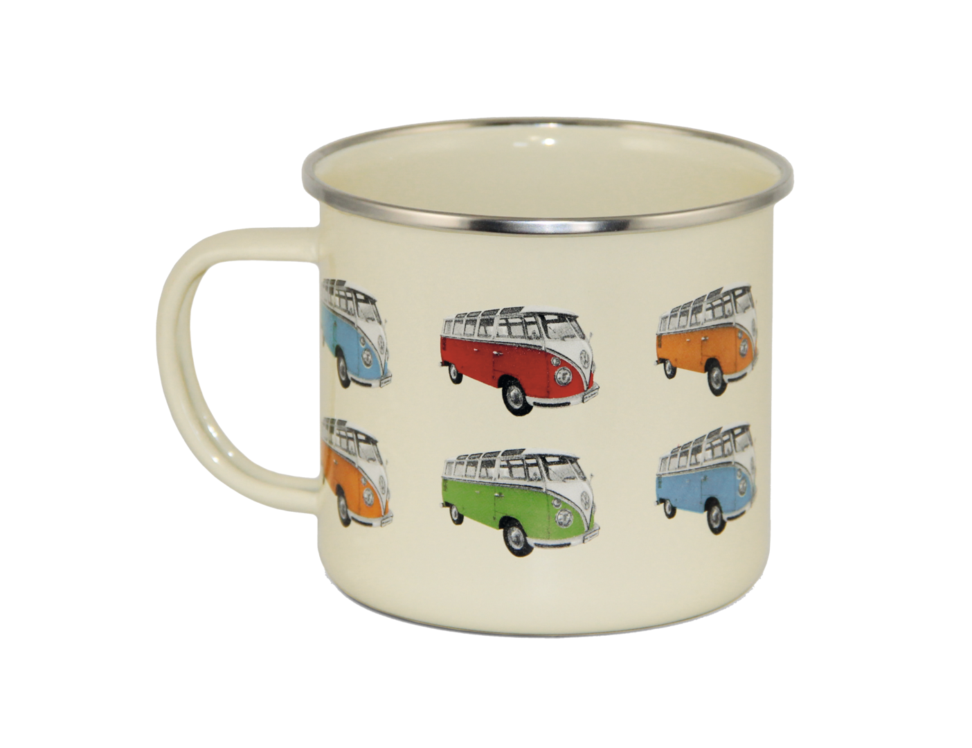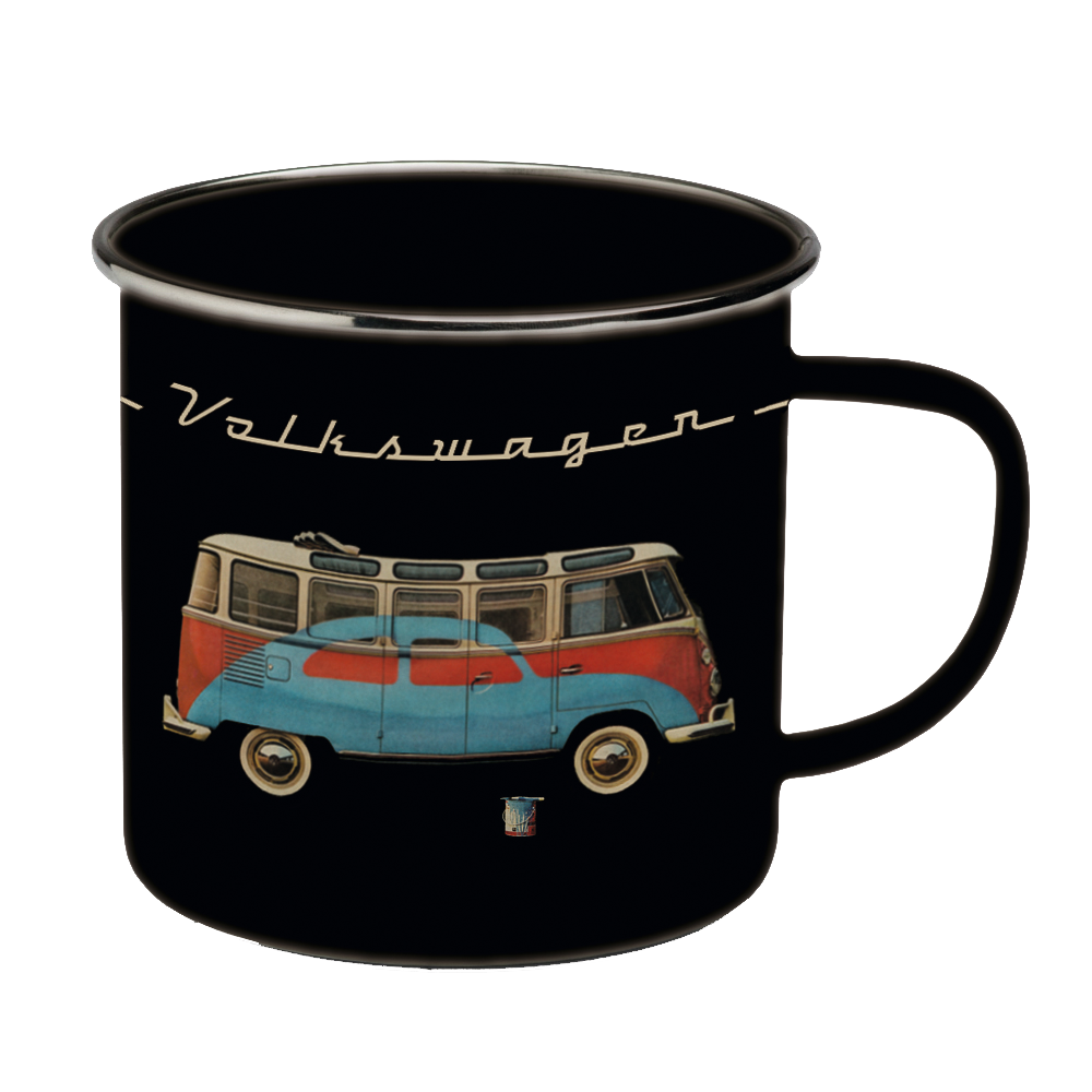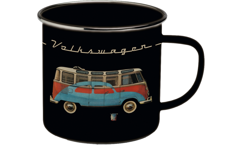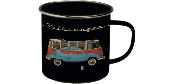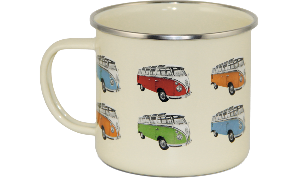 Coole Emaille-Tassen mit Bullis im Retrodesign.