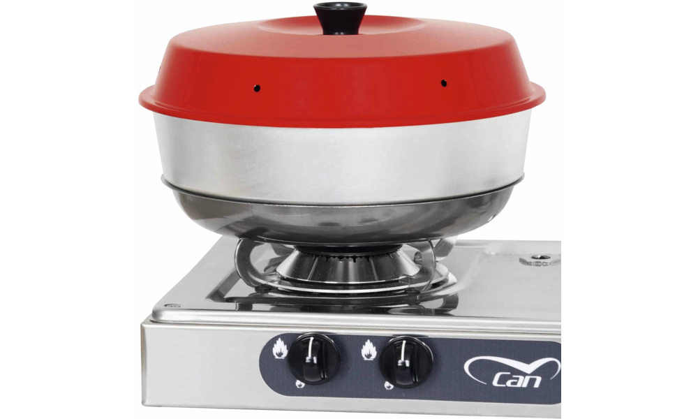 OMNIA Backofen. Der kleine Ofen, mit dem Sie unterwegs backen und Aufläufe machen können: direkt auf der Gasflamme, mit dem Spirituskocher oder auf der Herdplatte. Besteht aus drei Teilen, die zusammen einen Backofen, mit sowohl Ober- als auch Unterhitze, ergeben.