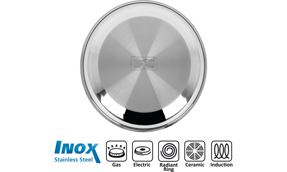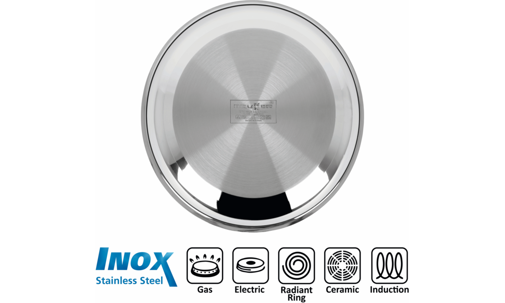 Qualitativ hochwertige Topfsetkollektion in platzsparendem Design. Töpfe und Deckel sind aus hochwertigem, spiegelglänzendem Edelstahl gefertigt. Bestens geeignet für Gas-, Elektro-, Keramik- und Induktionsherde. Spülmaschinengeeignet.