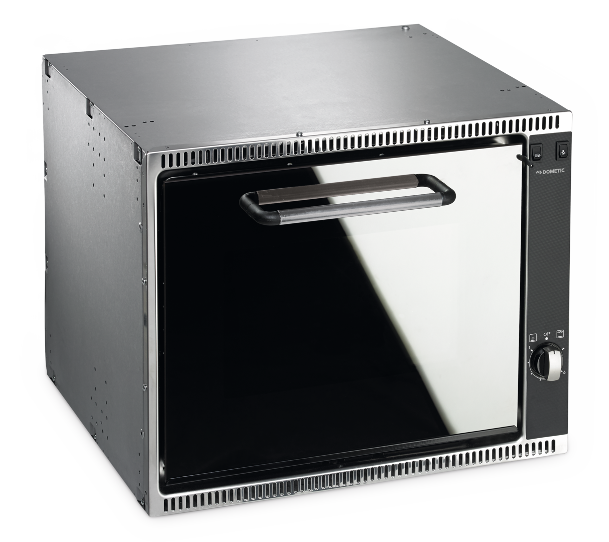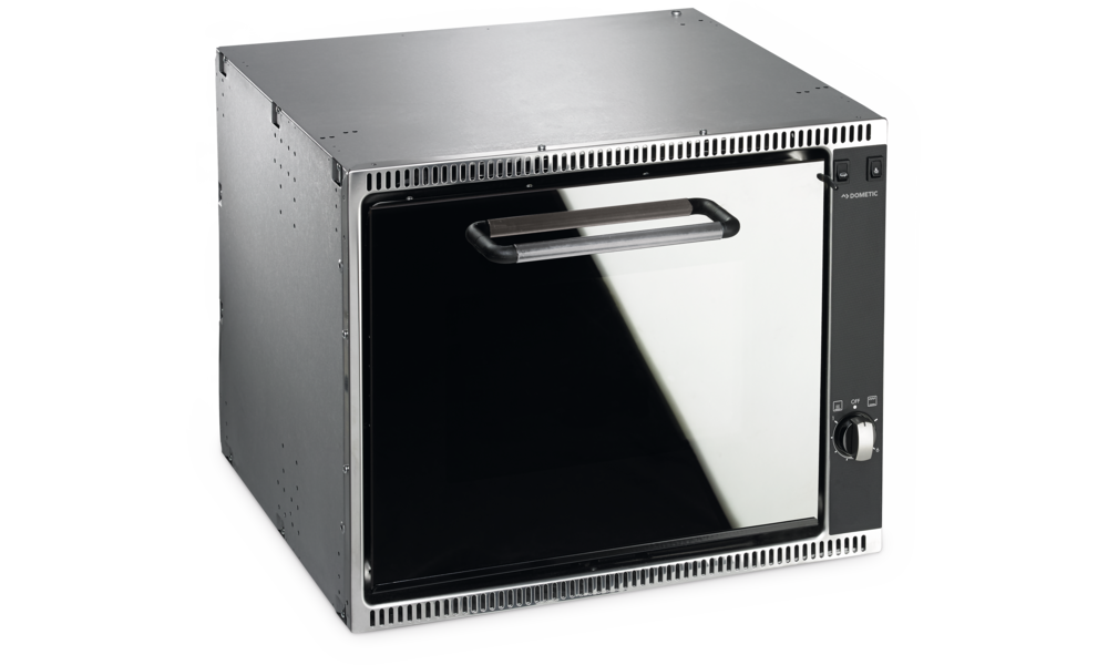 Einbau-Backofen OG 3000. 30-Liter-Backofen mit Grill aus Edelstahl. Ausstattung: Thermostat, Innenbeleuchtung, elektronische 12-Volt-Zündung, Sicherheitszündsystem, Türanschlag unten, Kaminanschluss, mehrschichtige Glastür mit Verriegelung, Grill und Drehteller.