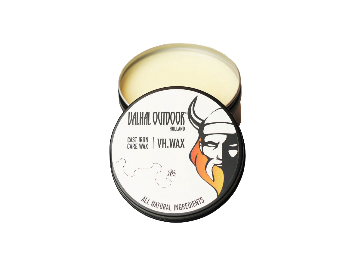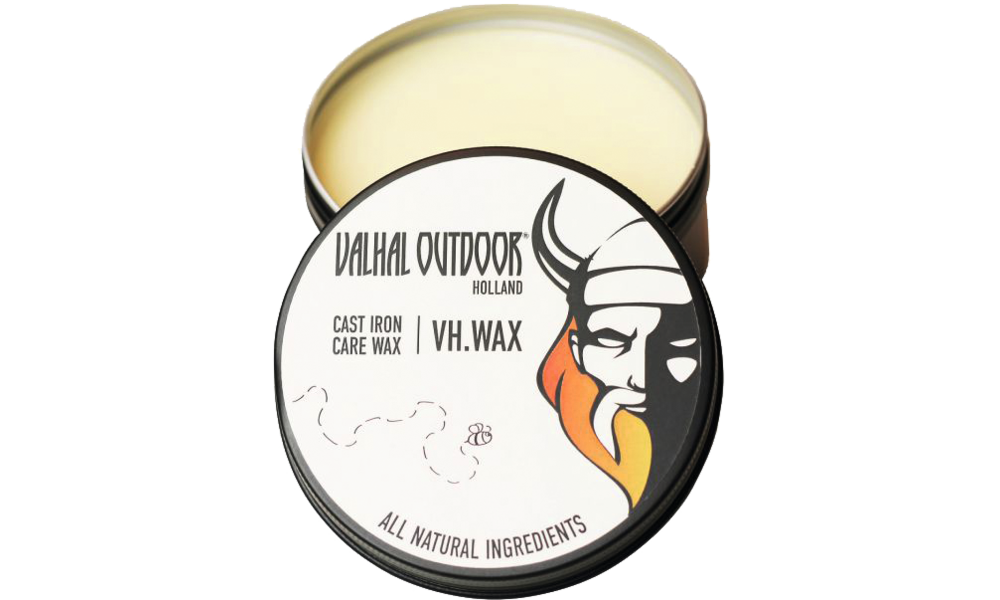 Valhal Pflege- und Einbrennwachs. Ideal für die Pflege Ihrer Gusseisenpfannen und Zubehörteile oder zum Einbrennen Ihrer Gusseisengegenstände. Das Wachs ist fest, kann aber leicht mit einem Schwamm oder Tuch aufgetragen werden. Da ausschließlich natürliche Zutaten verwendet werden, hat das Wachs eine schöne hellgelbe Farbe und man kann einen Hauch von Bienenwachs riechen.