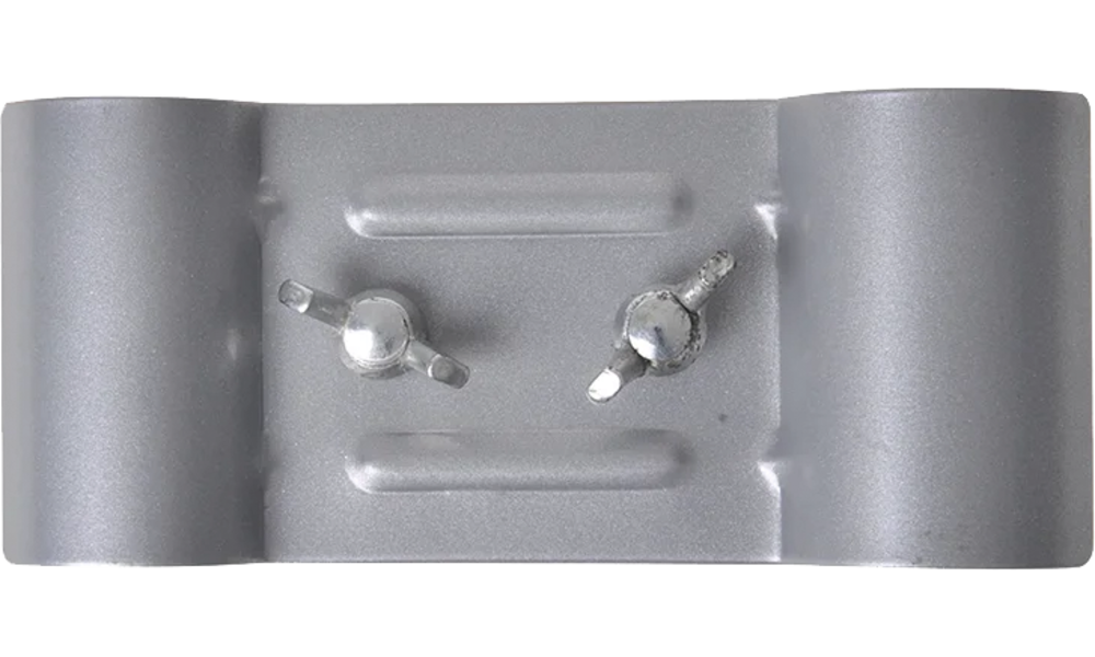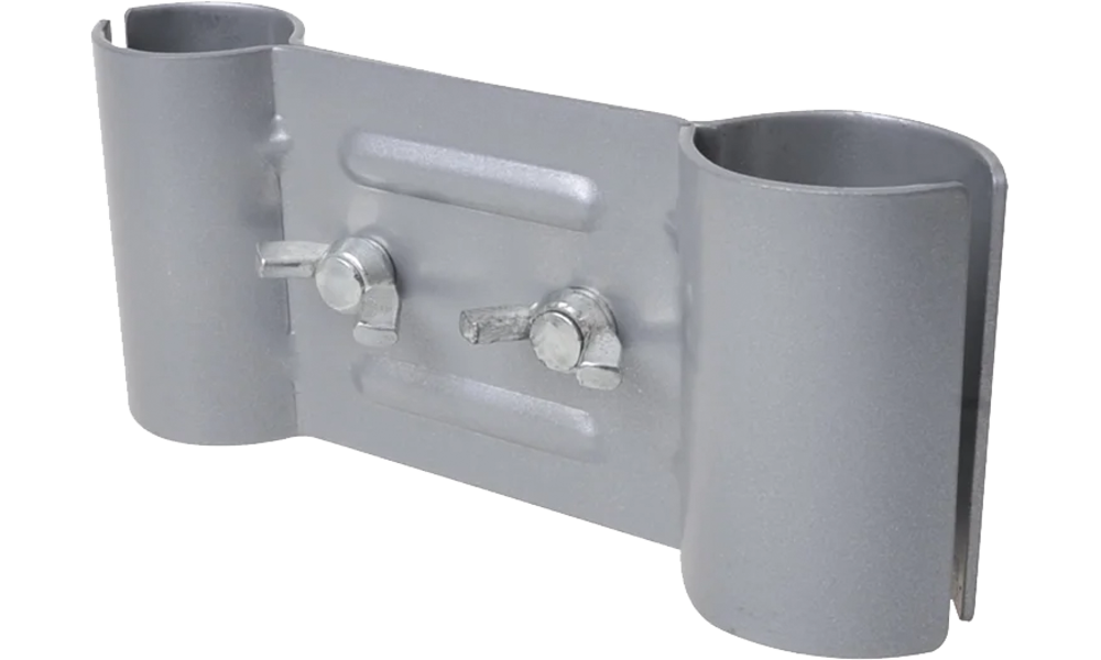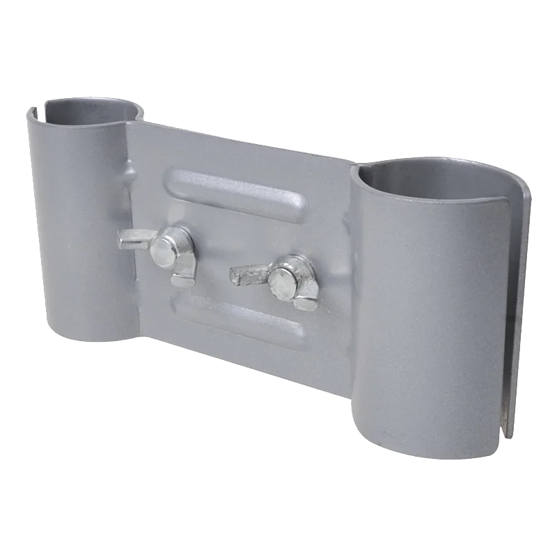 Klemmhalterung für Deichsel-Laufräder ø 48 mm zur Befestigung von Wäschespinnen oder Antennenmasten.