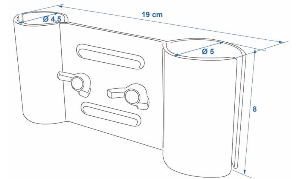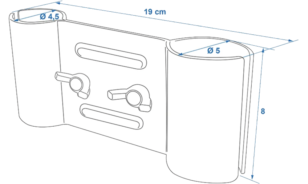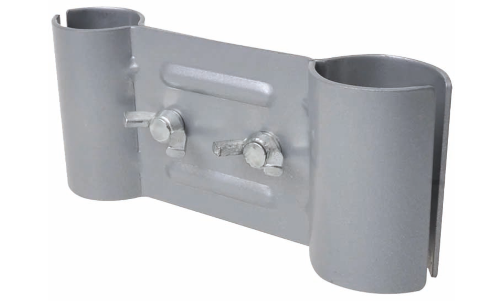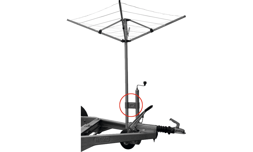 Klemmhalterung für Deichsel-Laufräder ø 48 mm zur Befestigung von Wäschespinnen oder Antennenmasten.