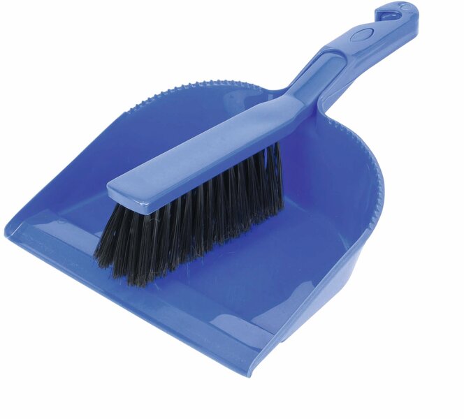 Platzsparendes Mini-Kehrset bestehend aus Handfeger und Kehrschaufel. Material: Kunststoff.