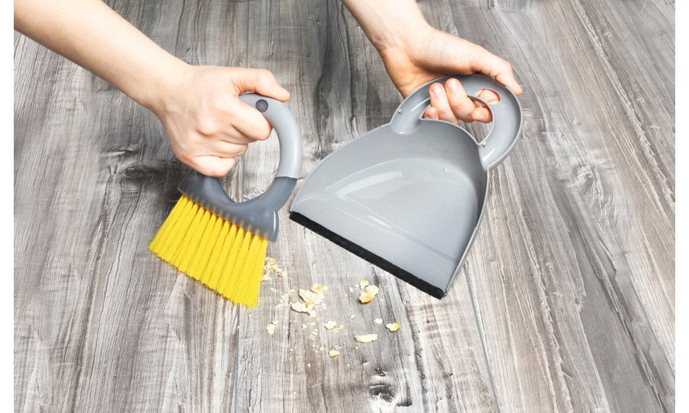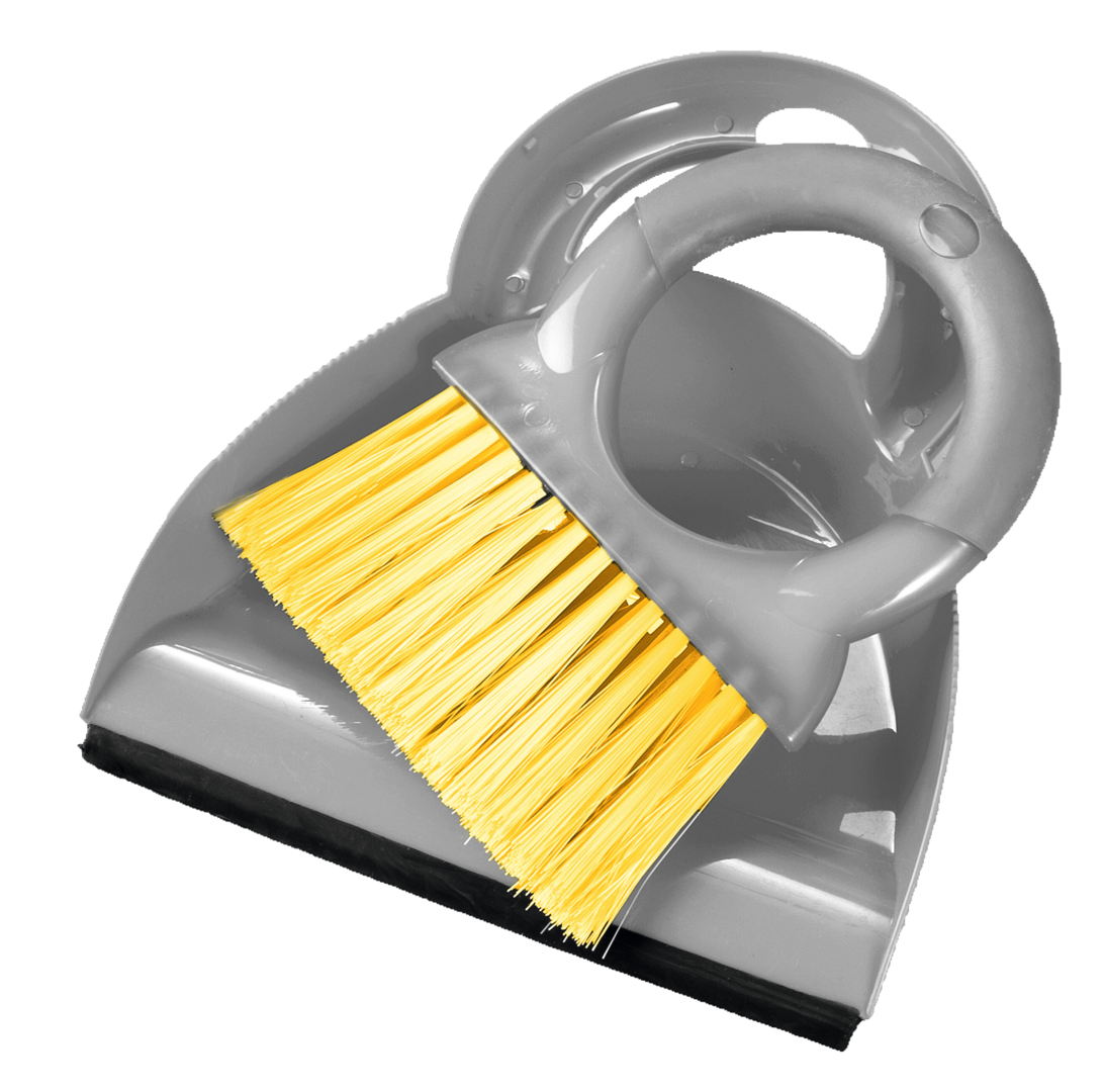 Platzsparendes Mini-Kehrset bestehend aus Handfeger und Kehrschaufel.