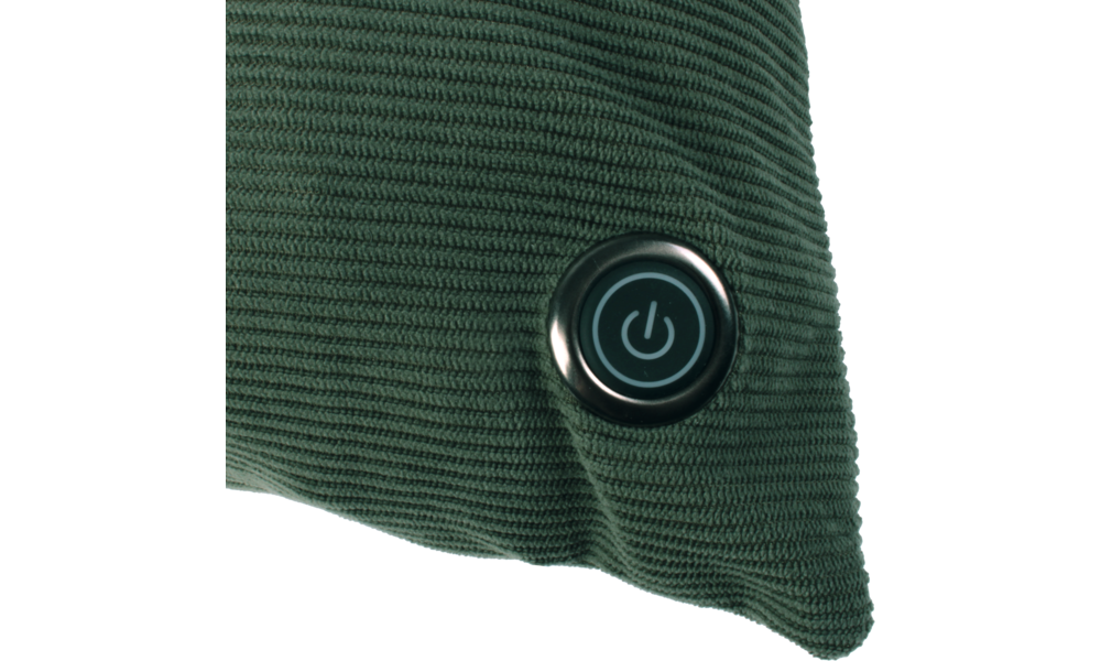 Waschbare Akku-Heizkissen mit 3 Heizstufen (grün, blau, rot). Inklusive 10.000 mAh Powerbank.