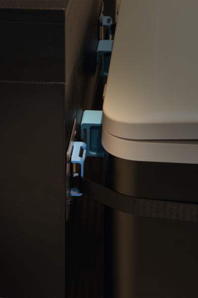 Mit den mitgelieferten Silikon-Distanzstücken können Sie Ihre Kühlbox sichern, ohne dass der Deckel vollständig geöffnet werden kann.