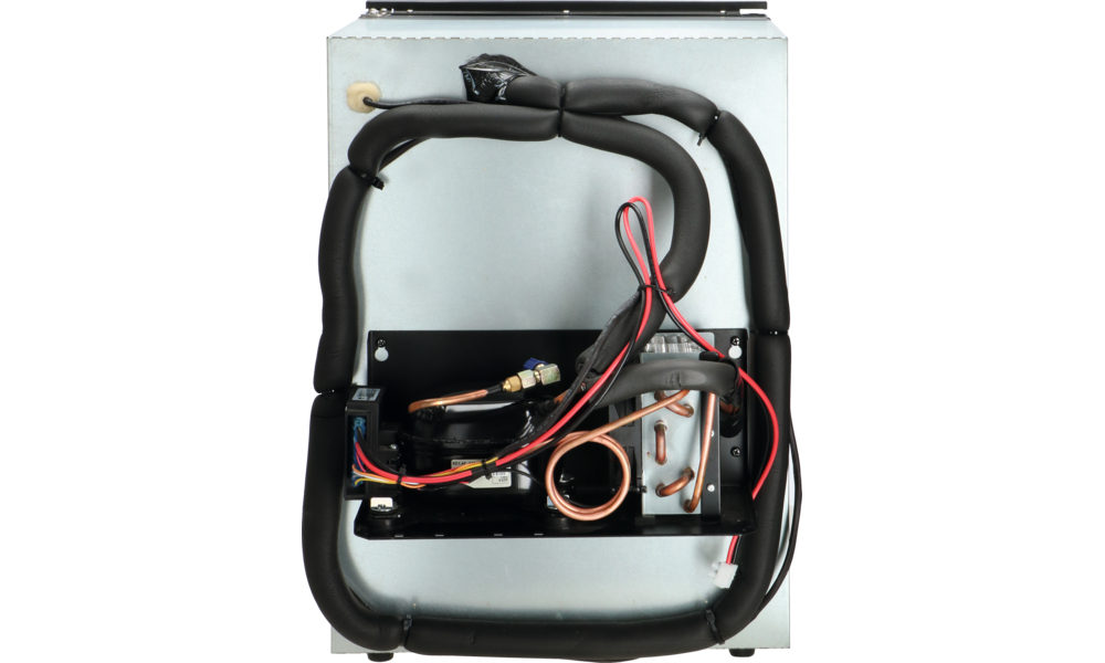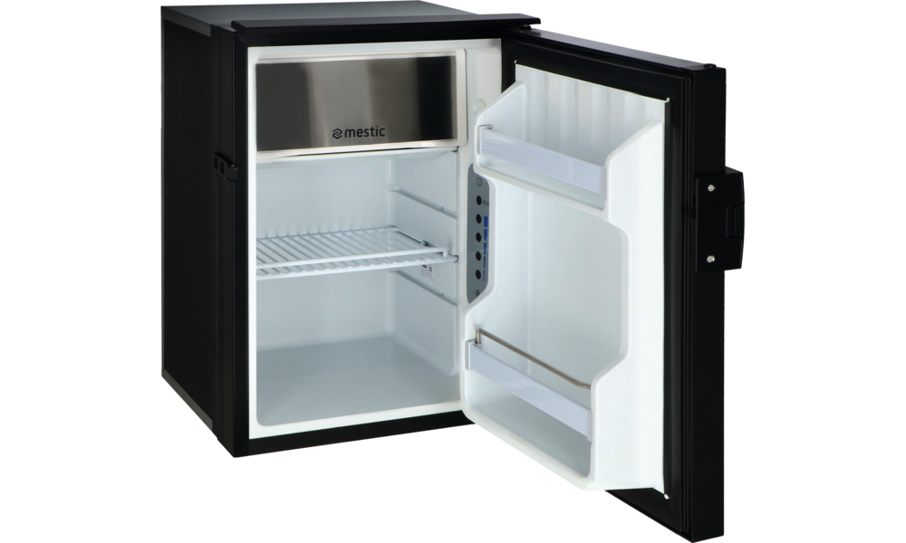 Der Einbau-Kompressorkühlschrank von Mestic kann dank des großen Gefrierfachs gleichzeitig kühlen und gefrieren. Er hat einen Kühlbereich von -14 °C bis +7 °C. Der größte Vorteil? Der Einbaukühlschrank kann dank der beweglichen Halterung, die das Kühlsystem trägt, auch in kleinen Räumen installiert werden. Damit kann man das tragbare Kühlsystem in einem Abstand von maximal 1,5 m zum Kühlschrank montieren. Wenn die bewegliche Halterung an einer anderen Stelle als an der Rückseite des Kühlschranks angebracht wird, ist das Gerät nur 38 cm tief. Dadurch kann der Raum, in dem der Einbaukühlschrank installiert ist, effizienter genutzt werden. Außerdem wählt man über das Display im Kühlschrank einfach eine der vier Kühl-/Gefrierstufen aus.