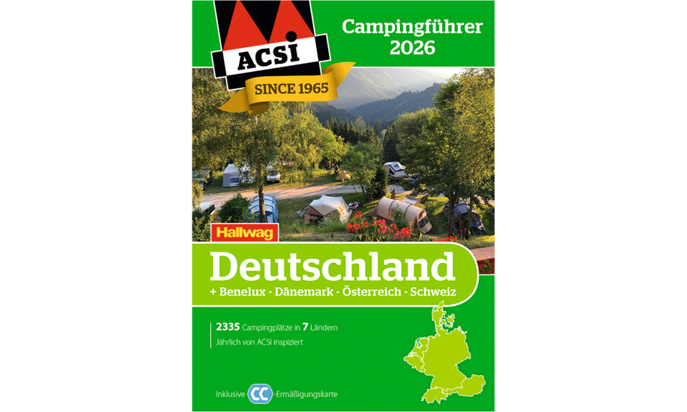 - einen Rabattgutschein über 50% für den Jahres-Zugang zur ACSI Camping Europa-App mit allen Campinginformationen**