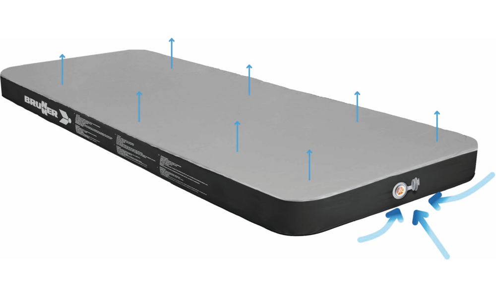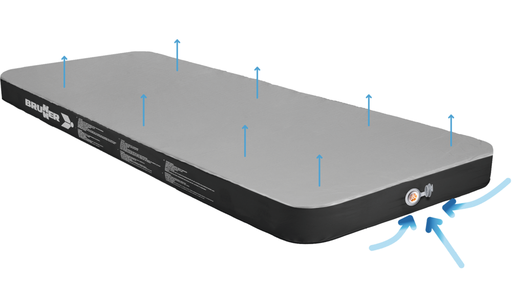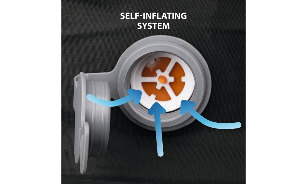 Neu entwickelte selbstaufblasende Matratze mit einem außergewöhnlichen Verhältnis von Gesamtgewicht zu Isoliermaterial, das durch die Verwendung einer durchgehenden Schicht aus Isolierschaum erreicht wird. Hergestellt aus 190T 75D Polyestergewebe mit Peach Skin Beschichtung auf der Oberseite.