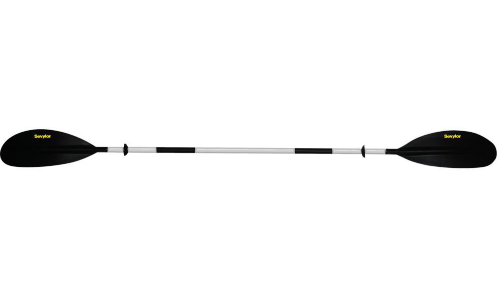2-teiliges Doppelpaddel. Löffelförmige, asymmetrische Paddelblätter aus Fiberglas und faserverstärktem Polypropylen mit Führungsrippe. Schaft aus speziellem Aluminium (aus der Luftfahrttechnik).