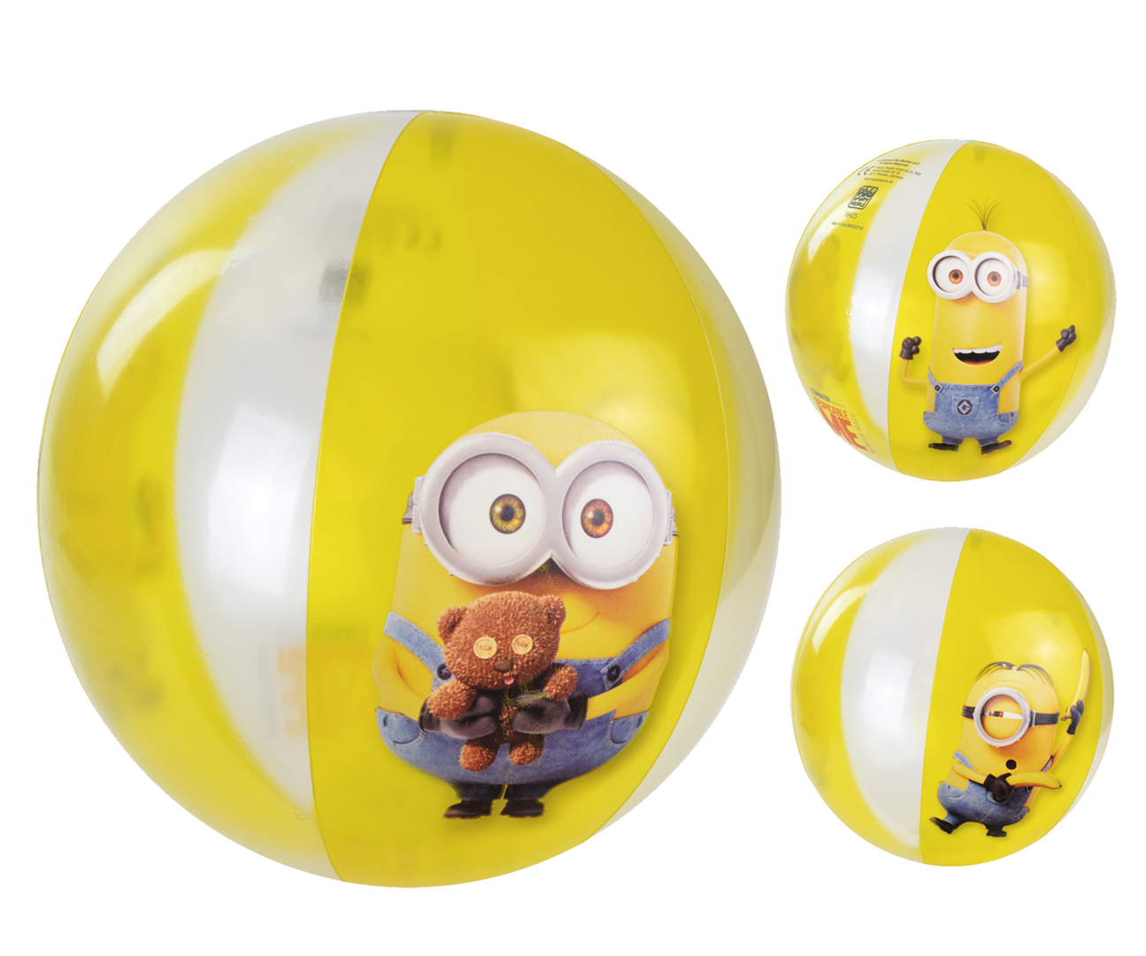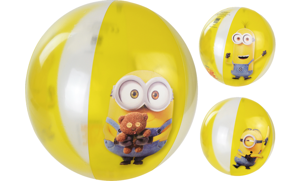 Wasserball Minion´s. Transparent mit Bananen Konfetti. Größe aufgeblasen ca. 33 cm, Größe unaufgeblasen ca. 50 cm.