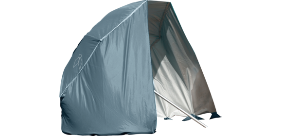 Hochwertiger Sonnenschirm. Material aus 100 % Polyester mit alubeschichteter Innenseite. Robuster Alustock ø 32 mm mit Alu-Knicker.