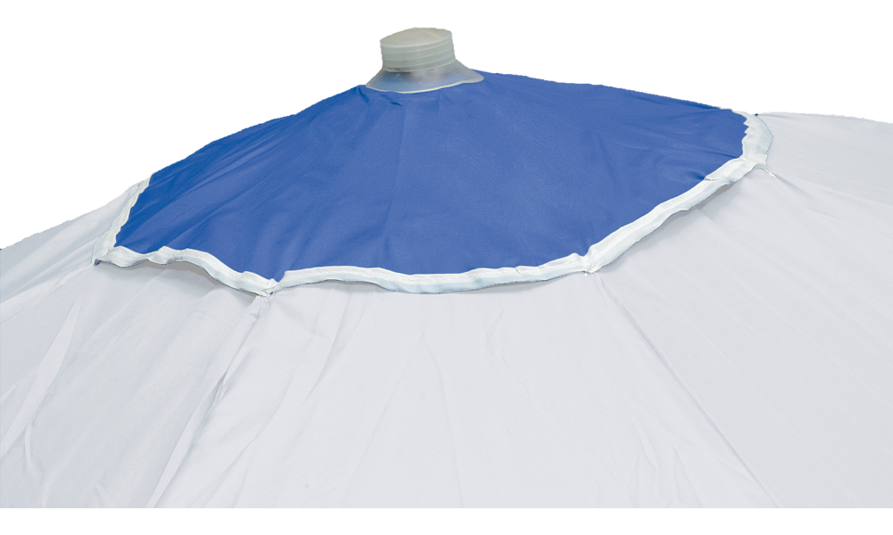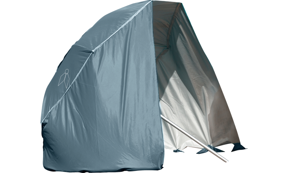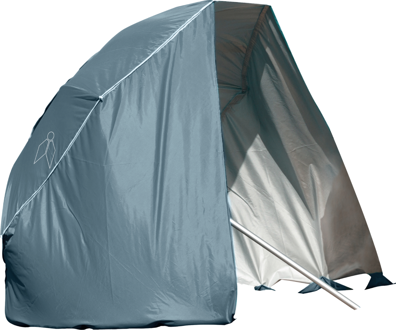 Sonnenschirm BEACH PARSOL XL 200. Smarter Strand-Sonnenschirm mit speziell angebrachten Befestigungsbändern, die eine Montage von schattenspendenden Seitenwänden ermöglichen. Bespannung 100 % Polyester, Sonnenschutz UPF 50+, Alu-/Fiberglasmast.