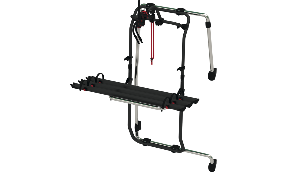 Spezielles Modell für den VW Crafter ab Bj. 2016 mit doppelter Hecktür. Der solide Edelstahlrahmen lässt sich an den serienmäßig vorhandenen Kupplungspunkten des Fahrzeugs anbringen. Er ermöglicht den sicheren Transport von drei normalen Fahrrädern oder zwei E-Bikes, wobei sich die doppelte Hecktür selbst bei Montage eines Fahrradträgers noch öffnen lässt. Die Nummernschildleuchte Licence Plate Carrier ist erforderlich (Nr. 92574/90458).