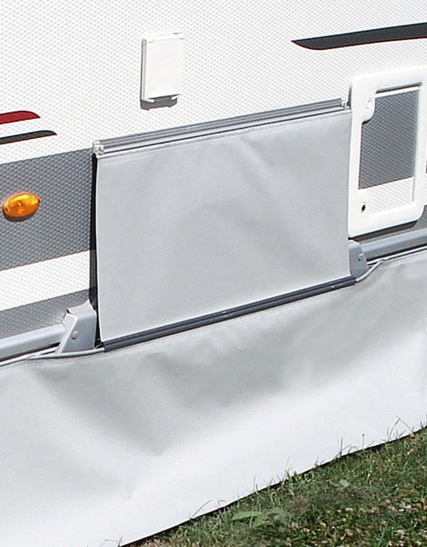 Standard-Radkastenabdeckung mit Verbindungsprofil, 150 cm lang. Mit stabiler Schere beliebig kürzbar.