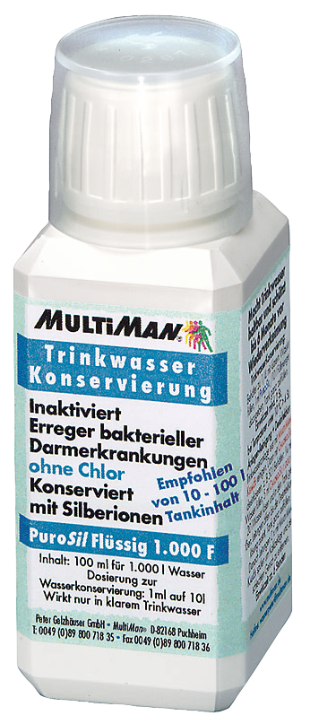 Konserviert Trinkwasser und schützt es in gereinigtem Tank und Leitungen bis 6 Monate vor Wiederverkeimung. Silberionen inaktivieren Erreger bakterieller Darmerkrankungen ohne Chlor und geben bis 6 Monate Schutz vor Wiederverkeimung.