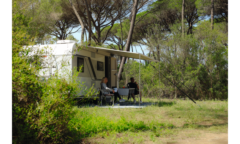 Vorteile: doppelte Kederschiene in der Frontblende, verstärkter Markisensack mit Antikratzband, Spannarmauflage aus Gummi zum Schutz der Fahrzeugwand. Die Markise ist in einem weichen Futteral aus Vinyl mit starkem Reißverschluss geschützt.