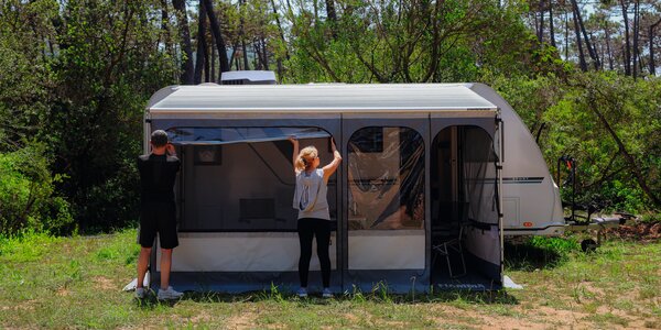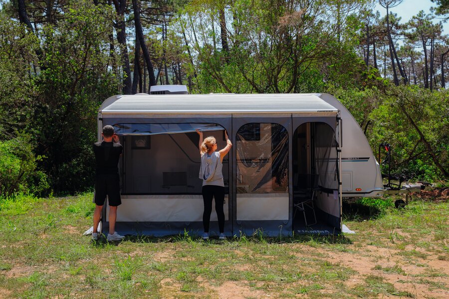 Die beste Komplettlösung. Markise im Futteral mit Vorzelt.