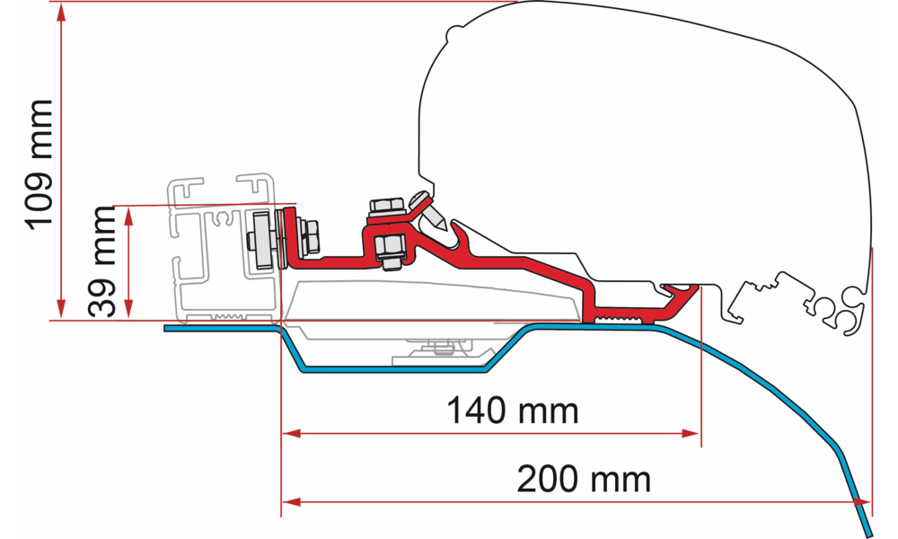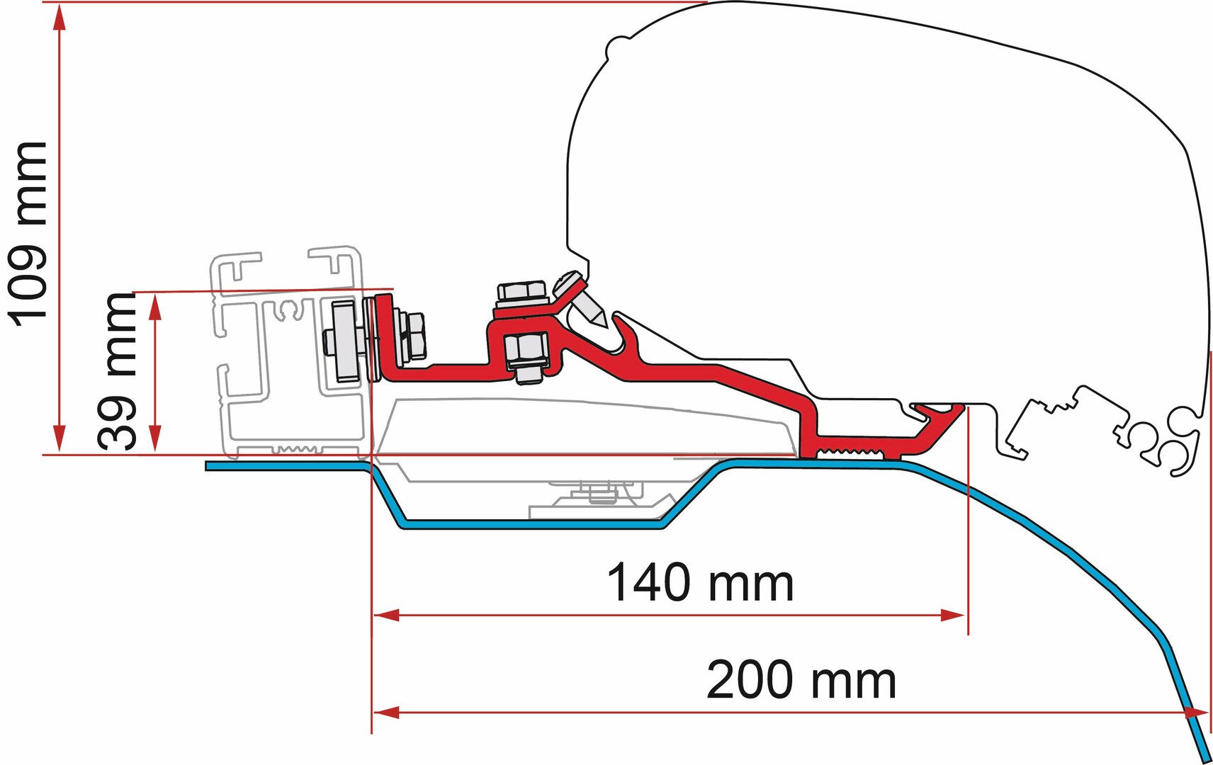 Kit Smart Clamp Ducato. Montagekit zur Montage der F80s Markise am Dachträgersystem Smart Clamp System von Thule.