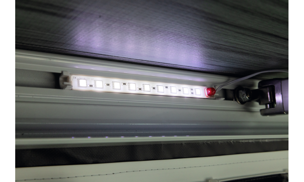Kit Awning LED. Leichte Montage durch einfaches Einrasten in der Frontblende der Markise.
