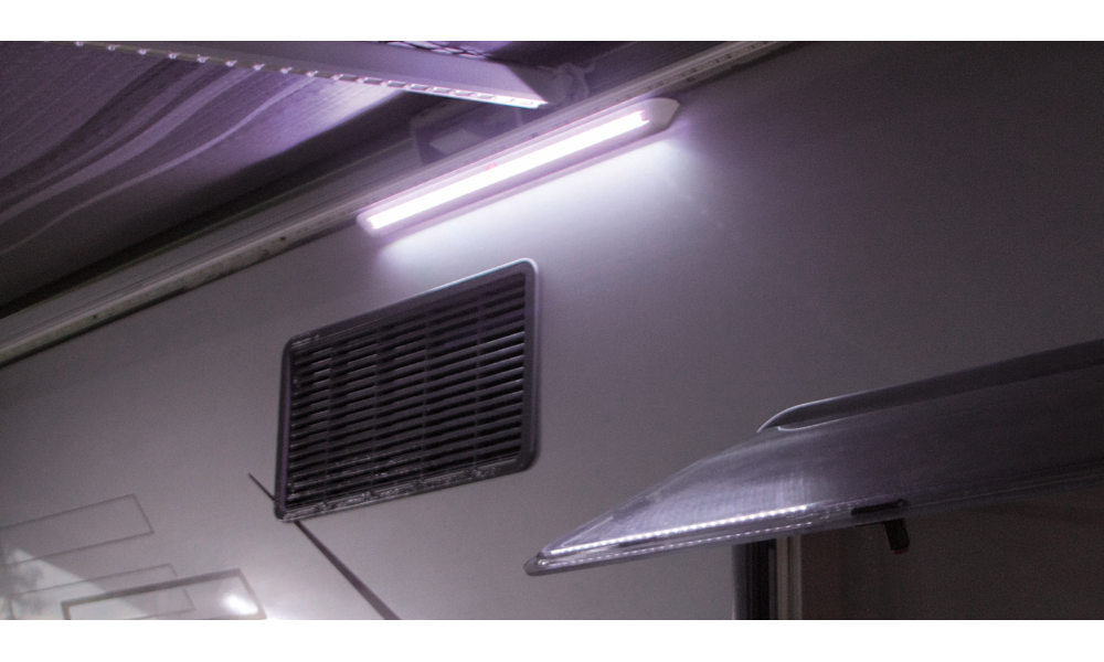 Außenleuchte zur Anbringung am unteren Markisengehäuse oder über der Tür.