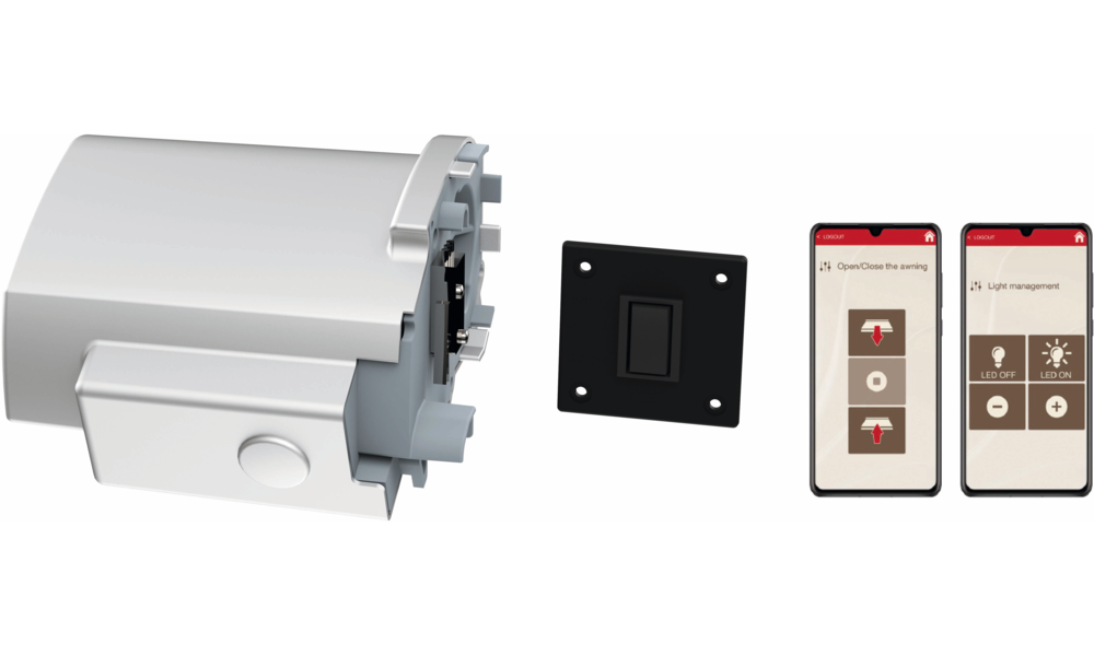Mit der praktischen Fiamma-App (Android und iOS) kann die Markise über das Smartphone angesteuert werden: Öffnen und Schließen, LED-Steuerung (an/aus/dimmen).