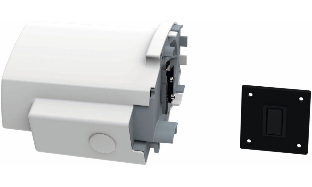 Durch die kompakten Maße des Motorgehäuses verlängert sich die Markise nur um 12 cm. Komplett mit Endkappe und Wandsteuergerät Control System.