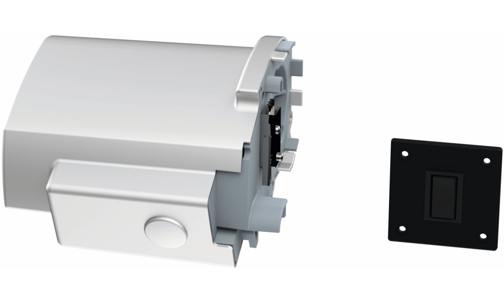 Durch die kompakten Maße des Motorgehäuses verlängert sich die Markise nur um 12 cm. Komplett mit Endkappe und Wandsteuergerät Control System.