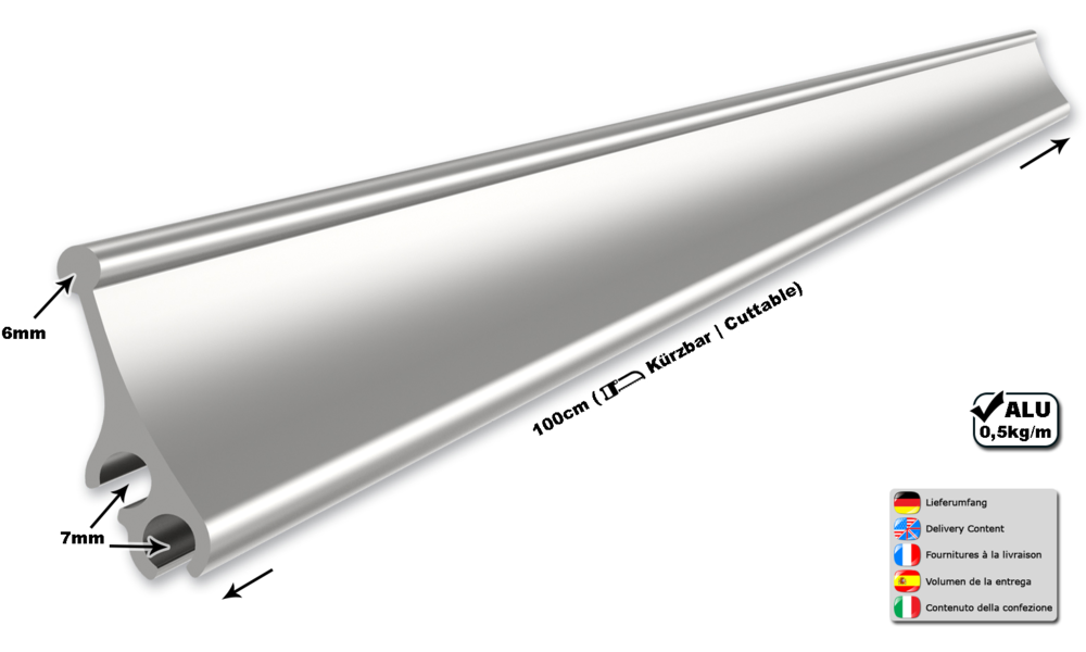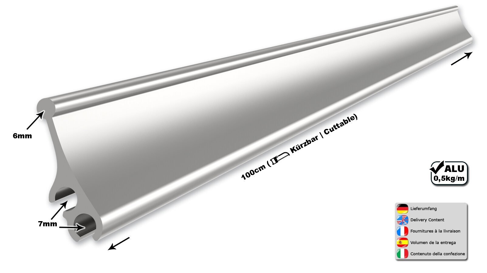 RDX Doppelkeder-Profil DUO-KEDER 1m, Doppel-Kederleiste für Camping-Markisen