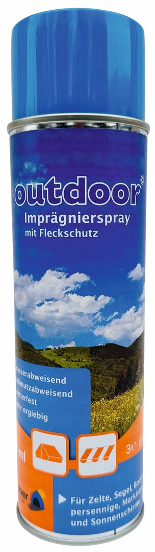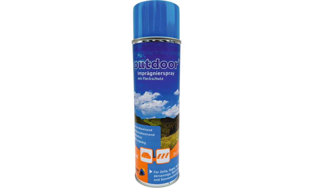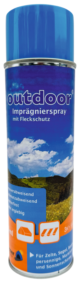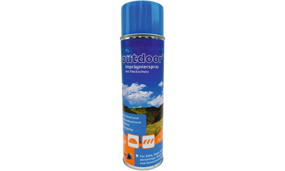 Zeltimprägnierspray. Imprägniert Gewebe aus Baumwolle, Baumwolle-Polyester, acryl- und alubeschichtete Gewebe. Dose reicht für ca. 5 m² Fläche. Inhalt 500 ml.