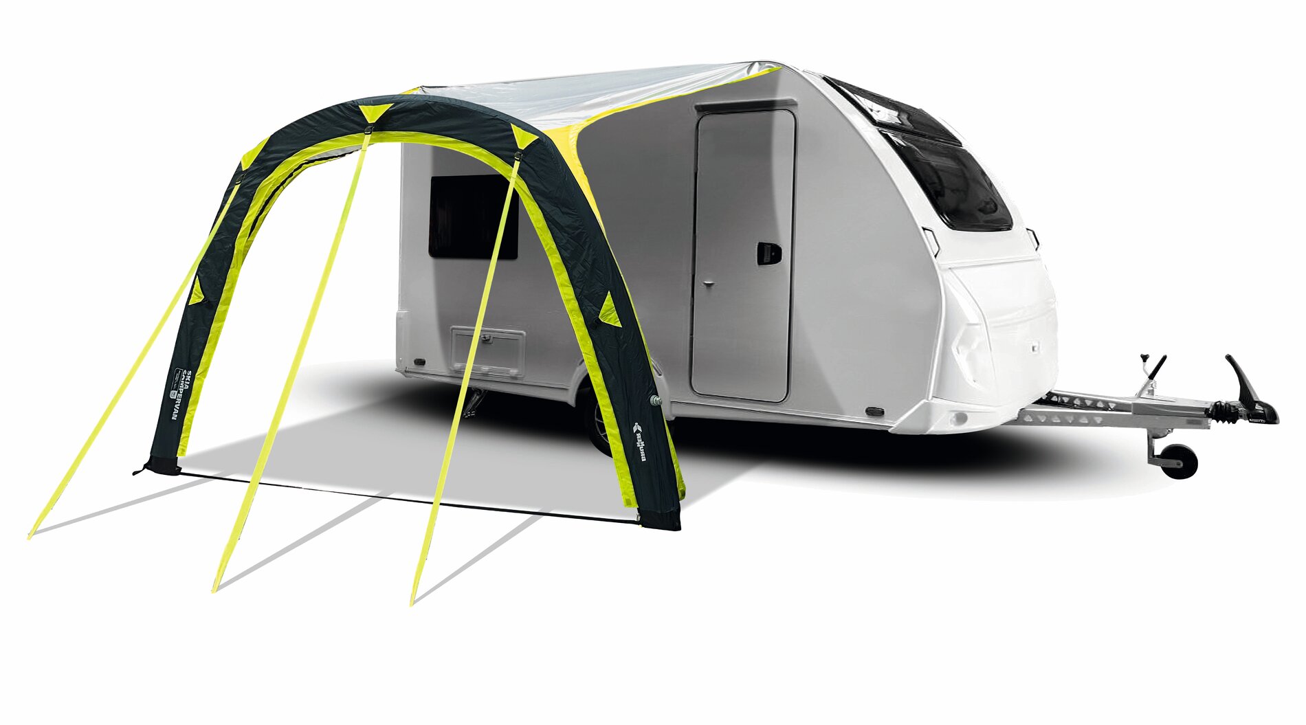 Sekundenschnell einsatzbereites Sonnensegel für Caravans und Kastenwägen mit aufblasbarem Gerüst (A.I.R. Tech Technologie).