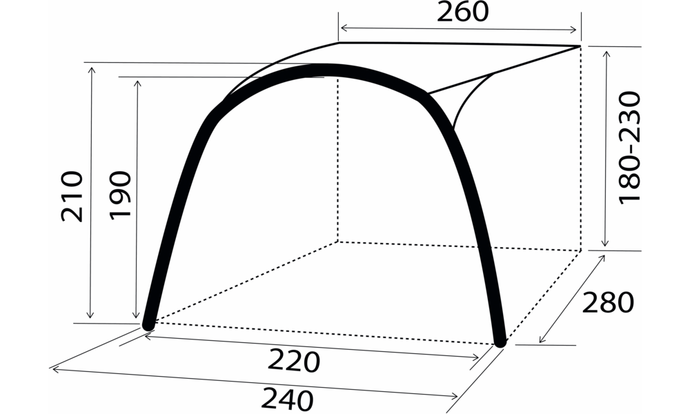 Länge 240 cm Breite / Tiefe 280 cm Höhe 210 cm Gewicht 6,9 kg