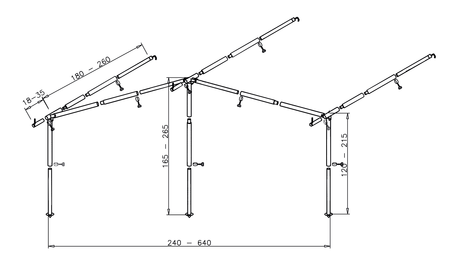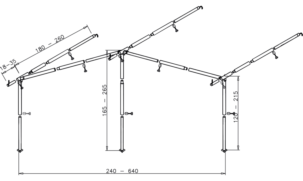 Komplett-Gestänge BUNGALOW-Alu ø 28/25 mm.