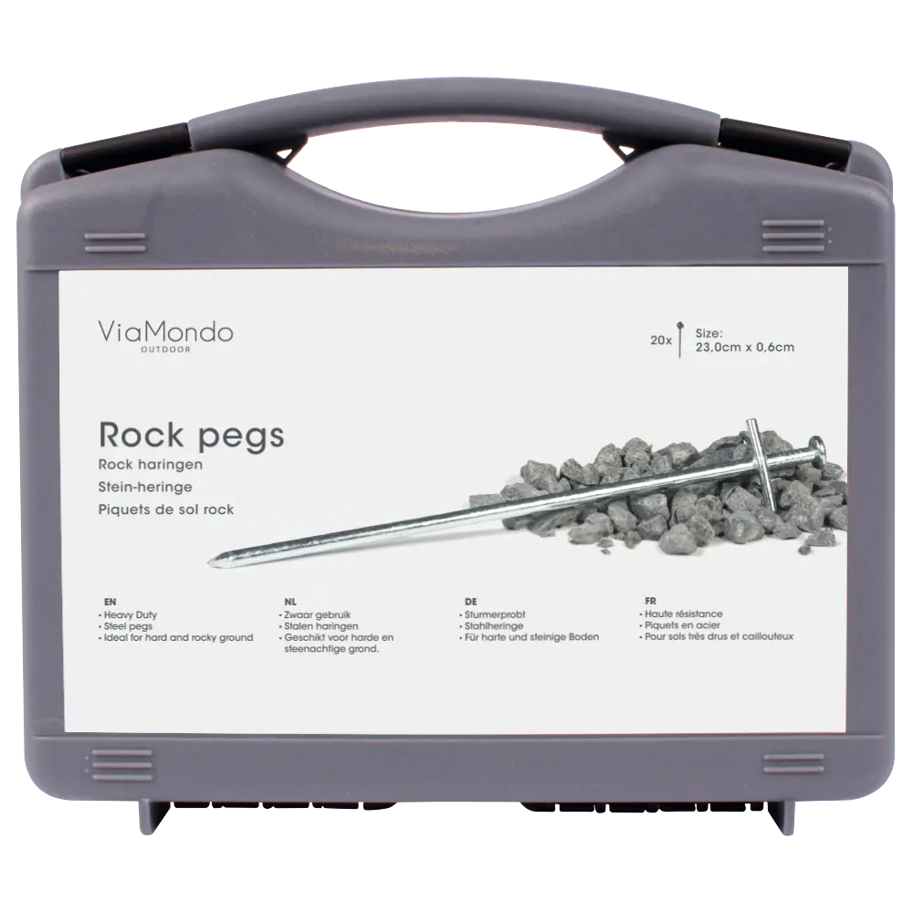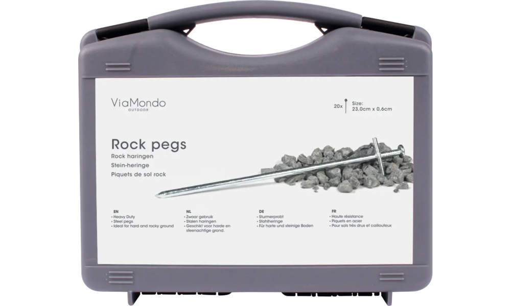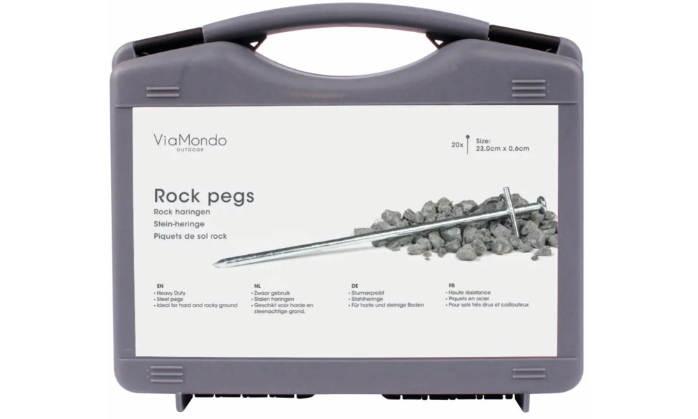 Inhalt: 20 Felsbodenheringe mit Stift, 23 cm lang, ø 6 mm, für harte und steinige Böden.