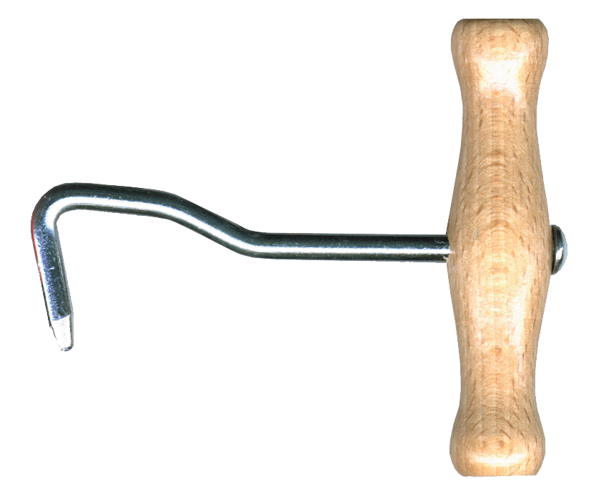 Heringsauszieher mit Holzgriff, aus verzinktem Stahl.