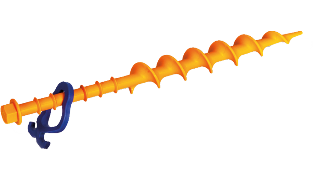 Glasfaserverstärkter, höhenverstellbarer Schraubhering für weiche, sandige Böden.