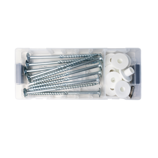 • Lieferumfang: 1x Set mit 10x Zeltschrauben 8 x 160 mm, 10x weißen Kunststoff-Unterlegscheiben Ø 35 mm, 1x Bit TX40, 21-teiliges Set in der L-BOXX Micro